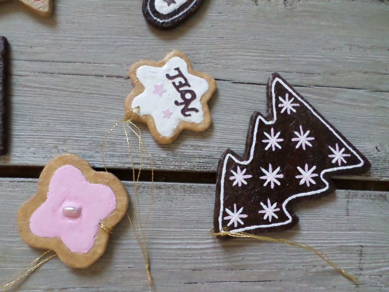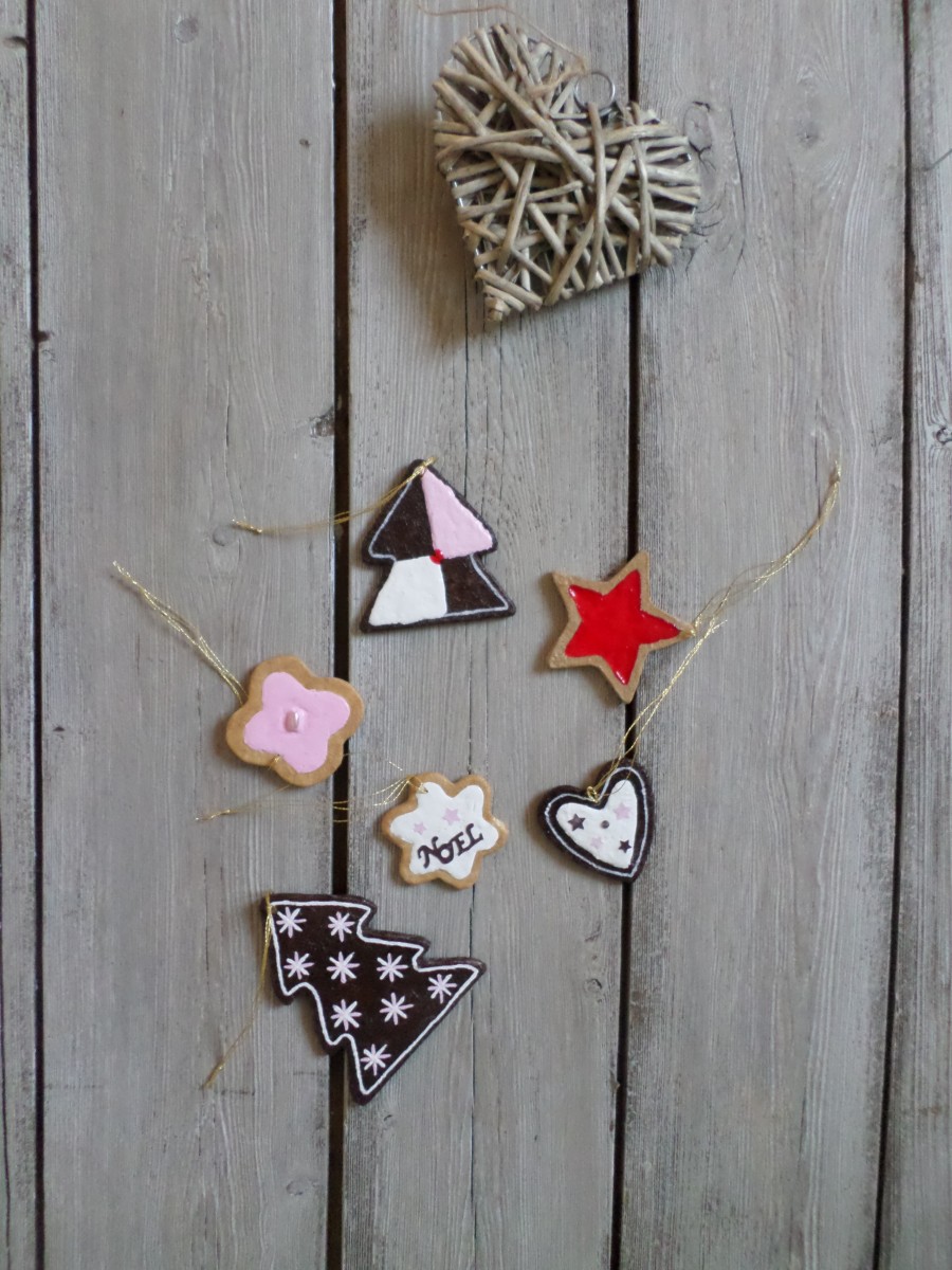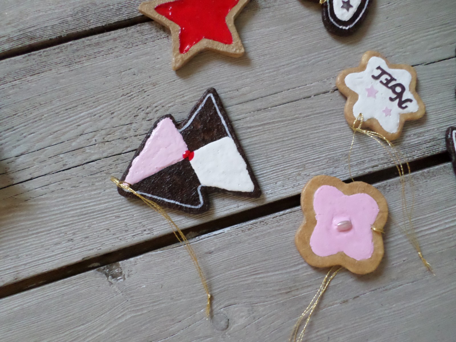 Lot de 6 suspensions façon petits gâteaux de Noël en bois et papier.