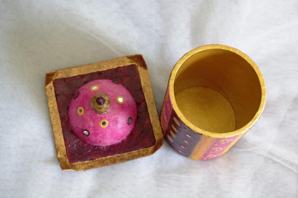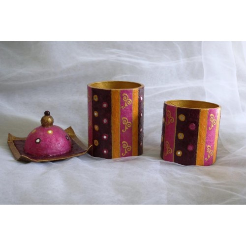 Boite ronde avec couvercle et pot "rose indien"