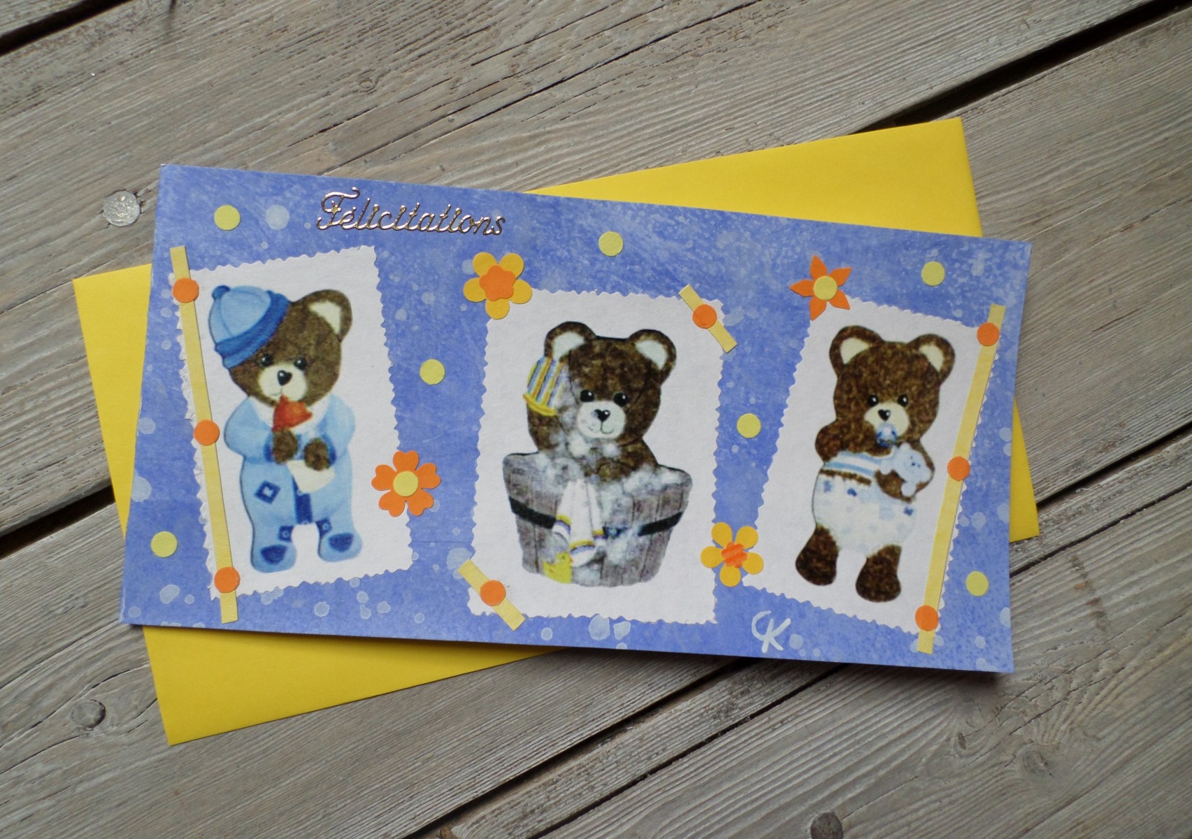 01 - Carte de félicitations naissance triplés "1,2,3...nous voilà".