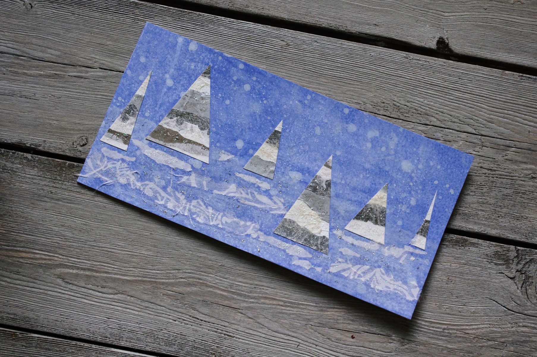 Sur papier entre 250g et 300g, couleur créée par mes soins, donc unique.