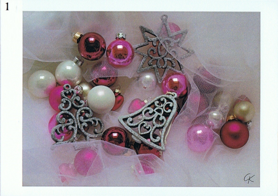 - (1) "Roses rose et tintinnabule"; cartes doubles horizontales, 15x10.5 cm pliées et 30x10.5 cm dépliées.