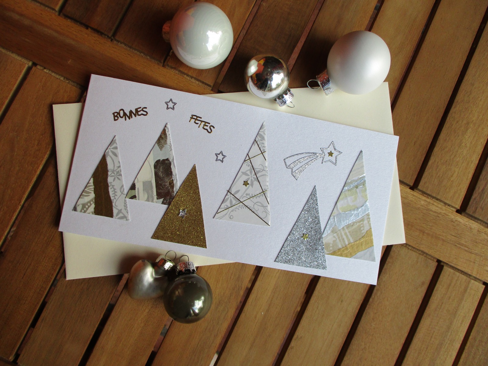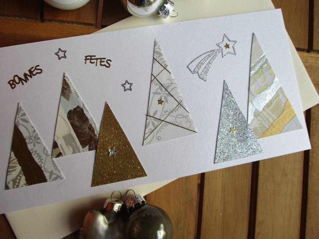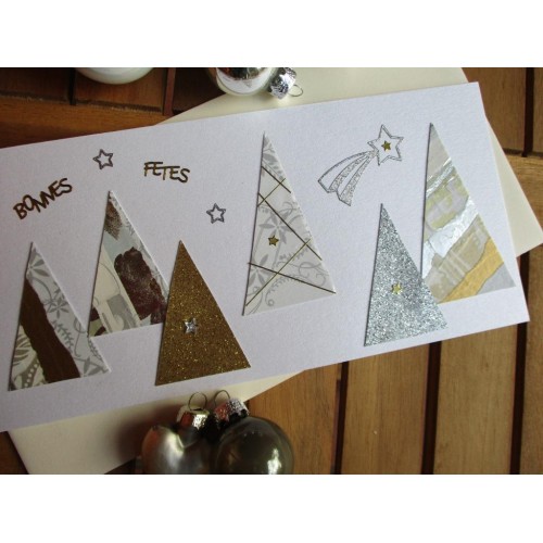 01 - Carte de vœux moderne double horizontale "6 Sapins"