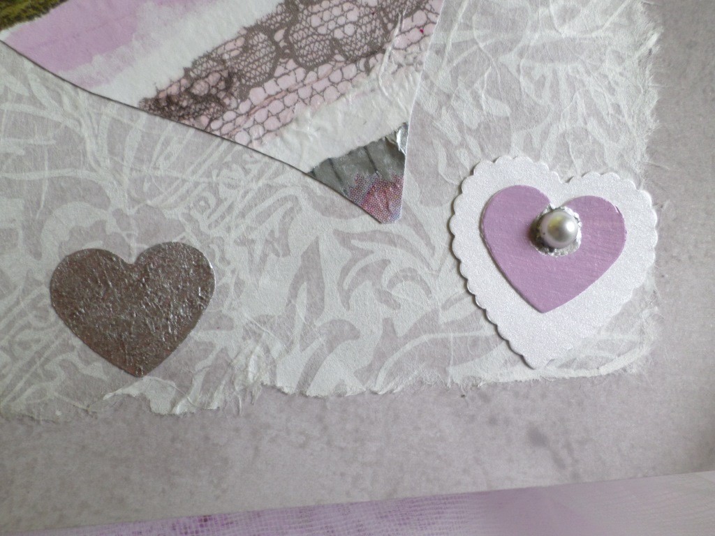 Impression sur papier 250 à 300 g/m², avec collages de perles et de découpes papiers réalisés par moi, donc unique.