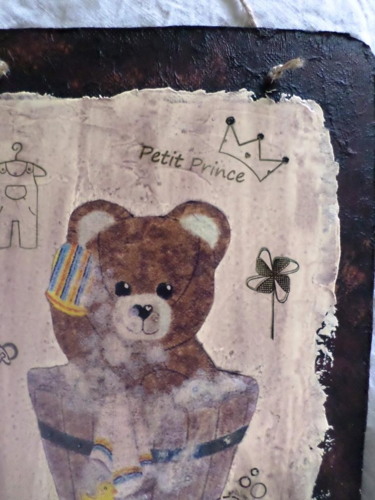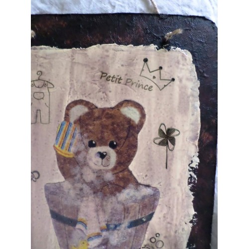 Décoration murale imitation plaque de métal rouillé avec transfert d'une reproduction d'une de mes oeuvres.