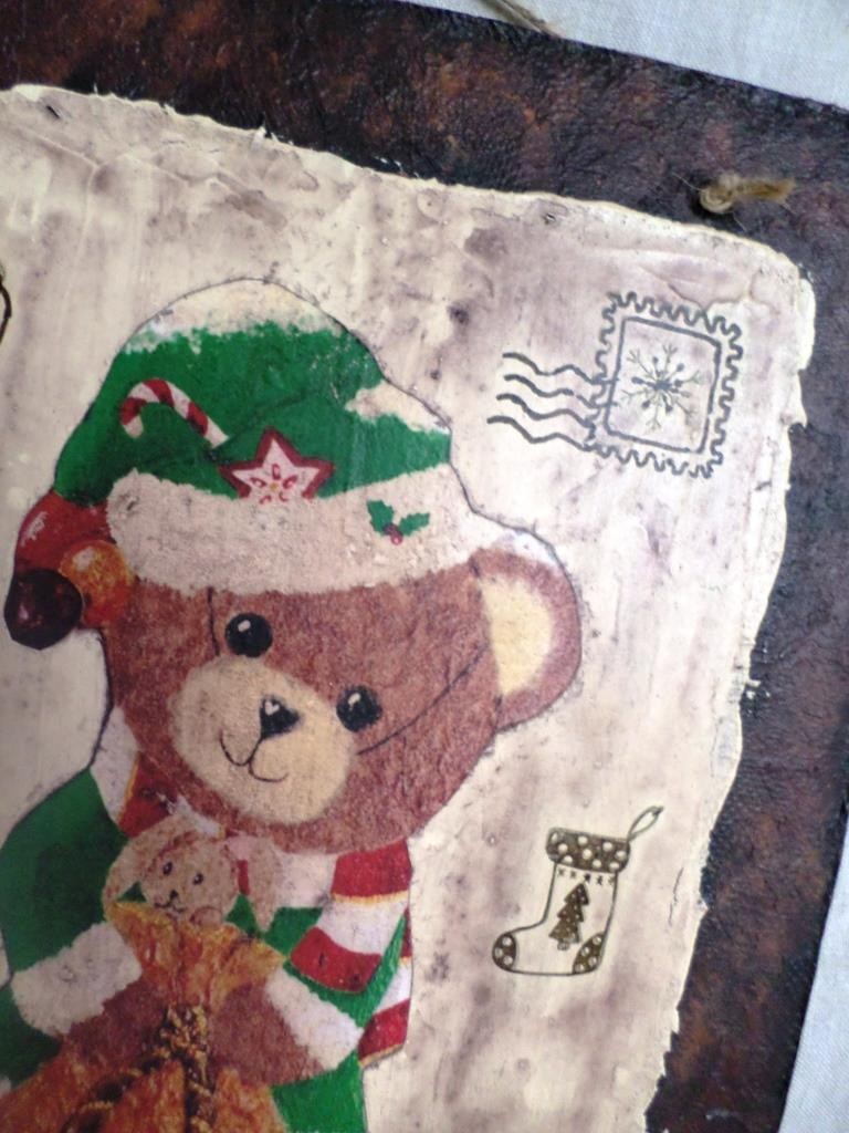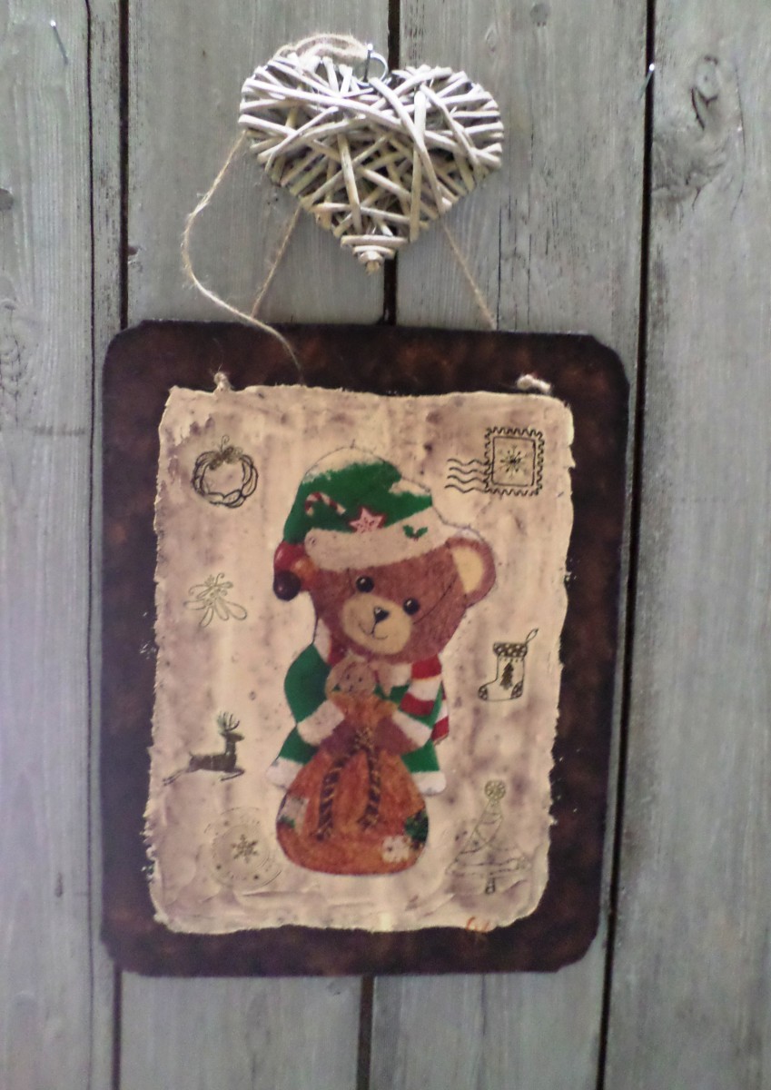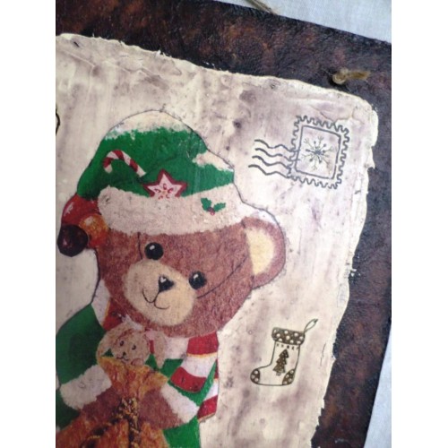 AMANDINE LUTINE DE NOEL - Tableau décoratif imitation plaque métallique rouillée et émaillée