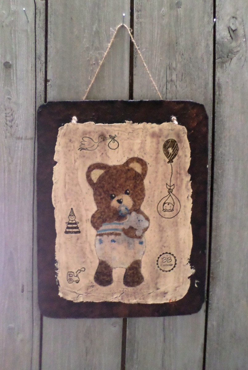 MIEL BEBE - Tableaux décoratif imitation plaque rouillée et émaillée