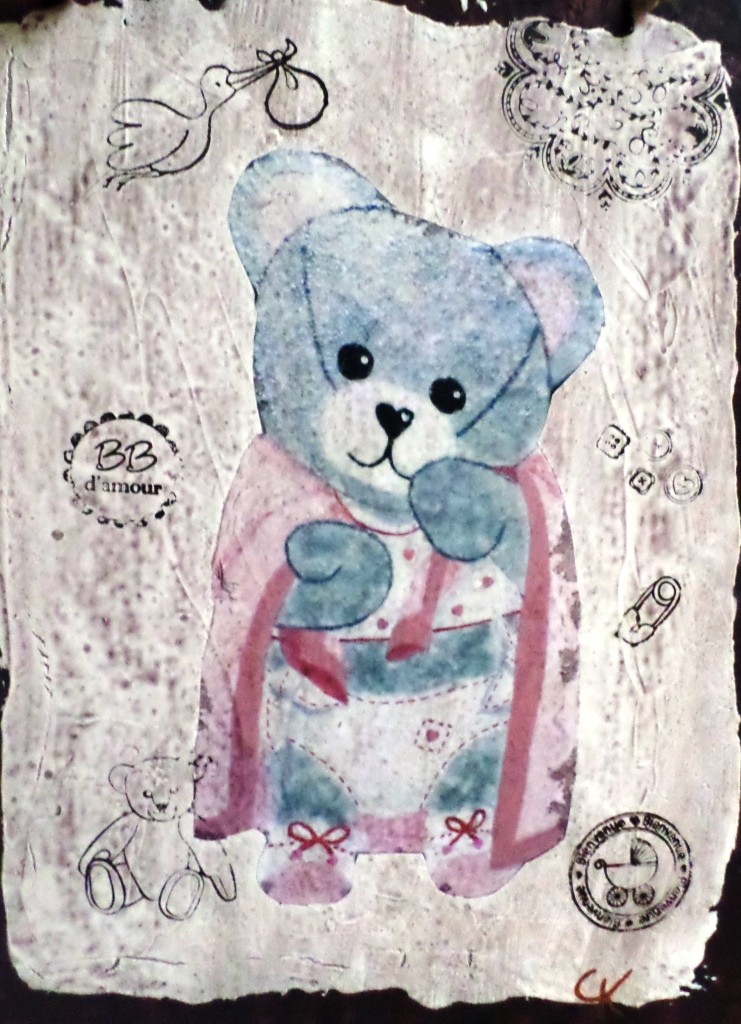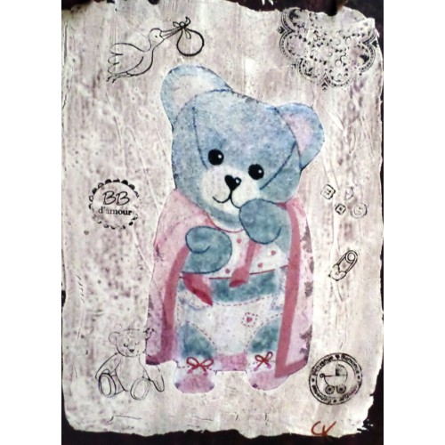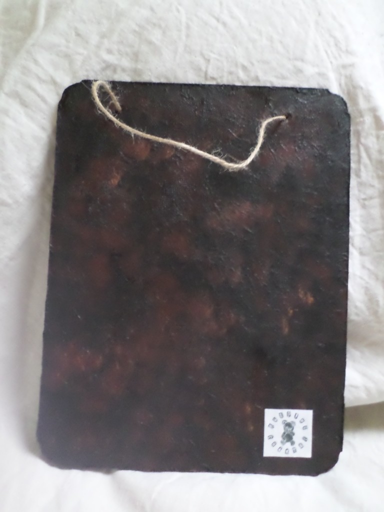 Fait entièrement par mes soins, c'est un travail de papier et d'acrylique sur une base carton.