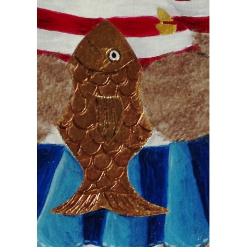 Cette création originale est faite avec une technique de collage de différents papiers et de peinture acrylique sur du bois (médium).