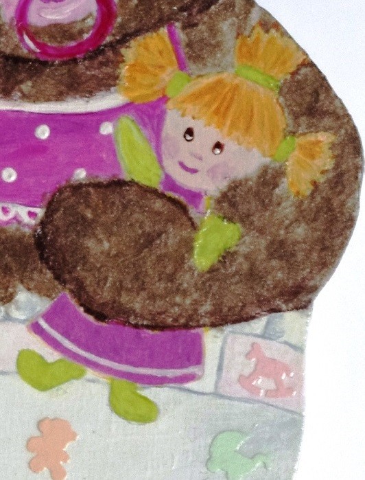 Utilisation de vernis et colle sans solvant, sans danger pour les enfants, même si cette décoration n'est pas destinée à être mise en bouche.