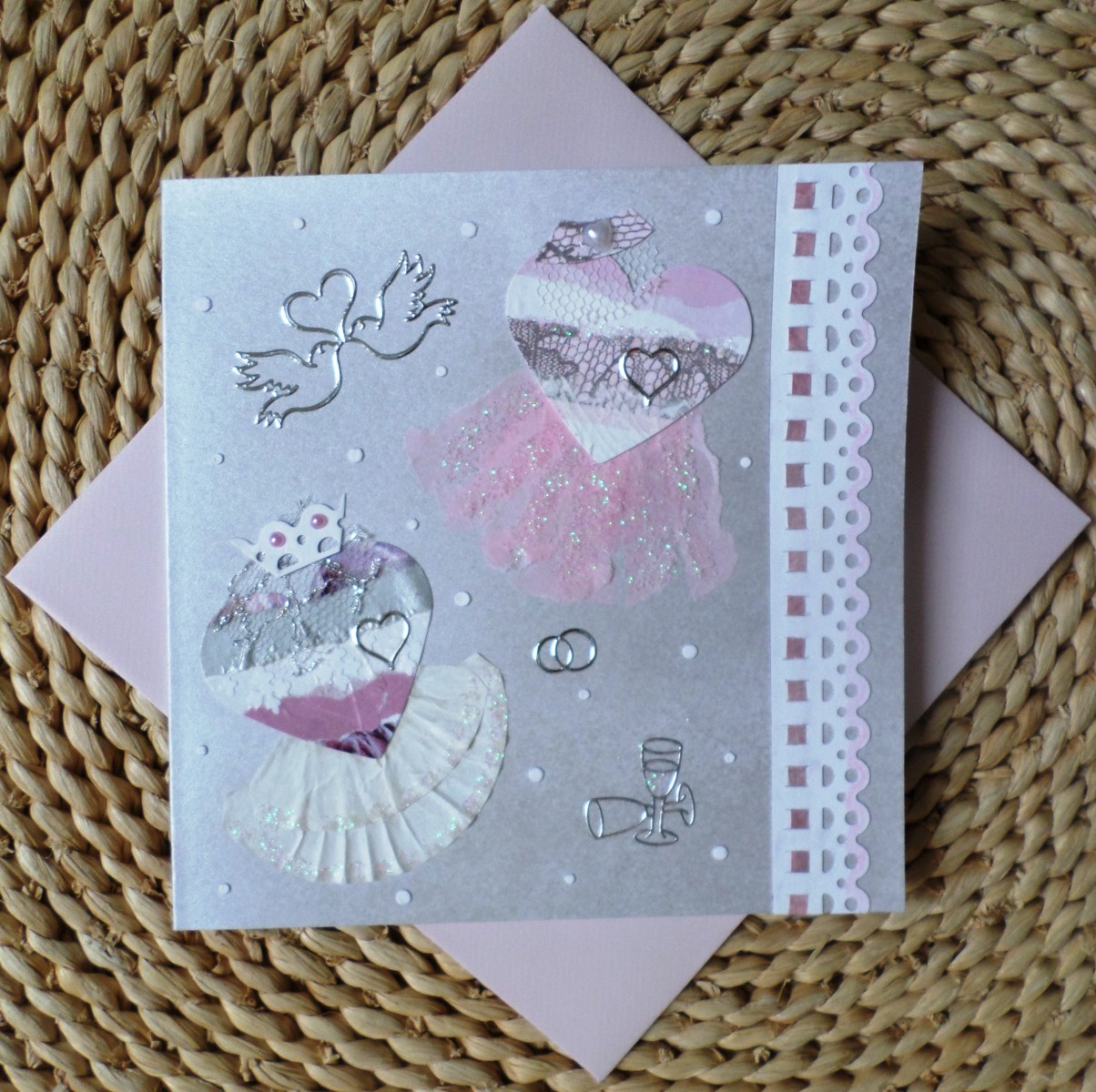 Voilà une jolie carte pleine de charme pour féliciter de jeunes mariés.