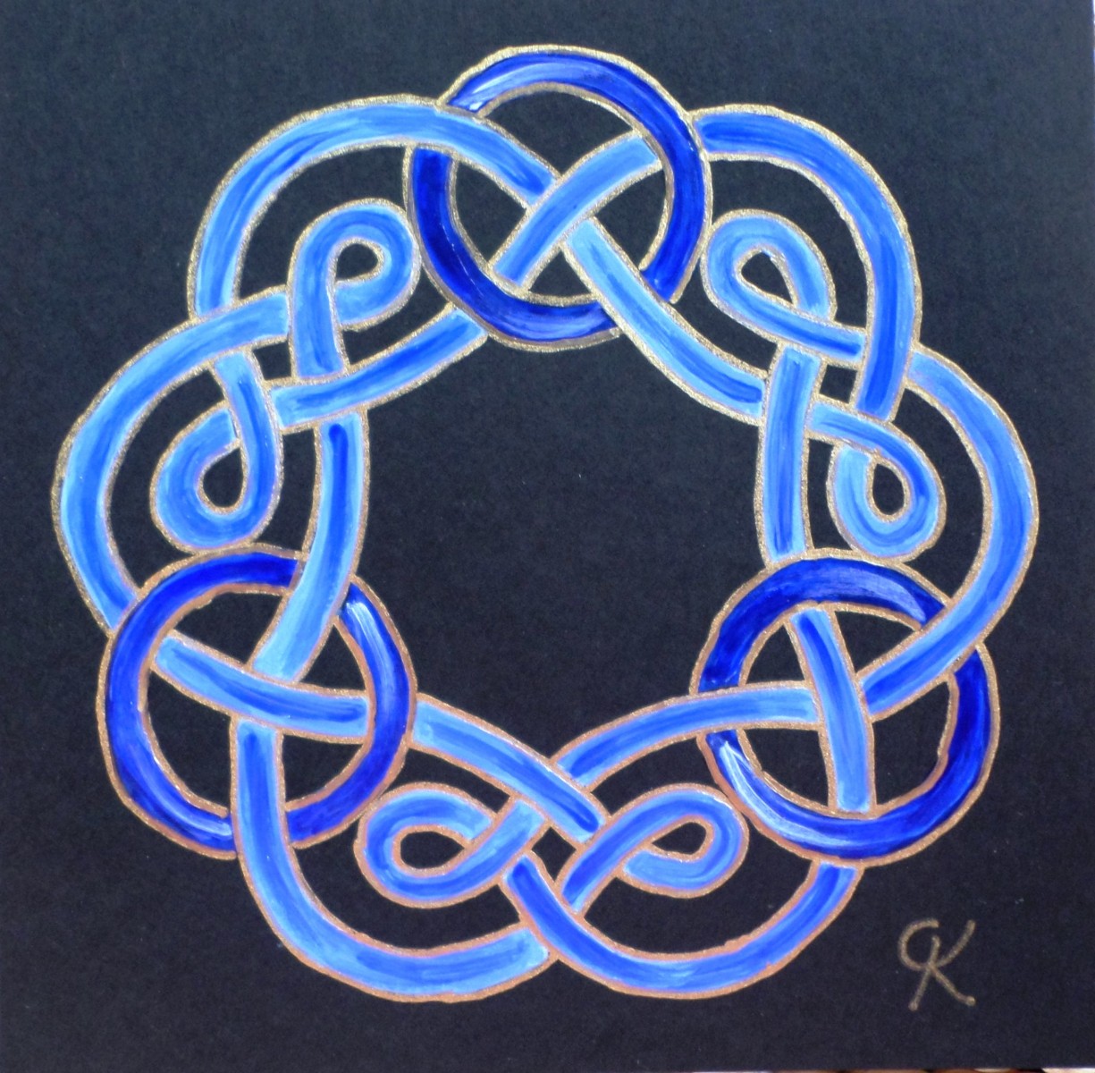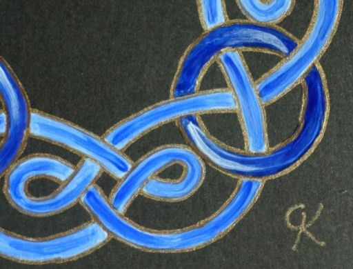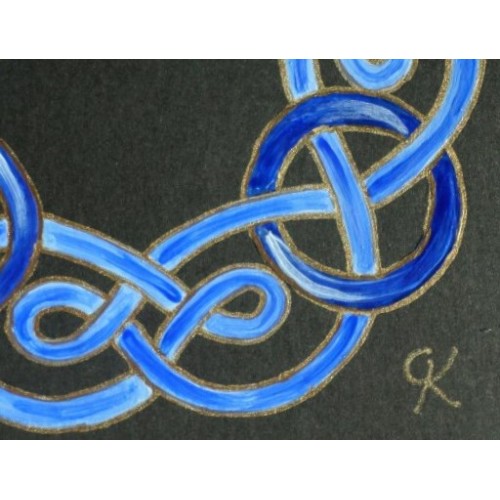 05-Carte carrée "Celte" bleu outremer : entrelacs clairs, nœuds foncés.