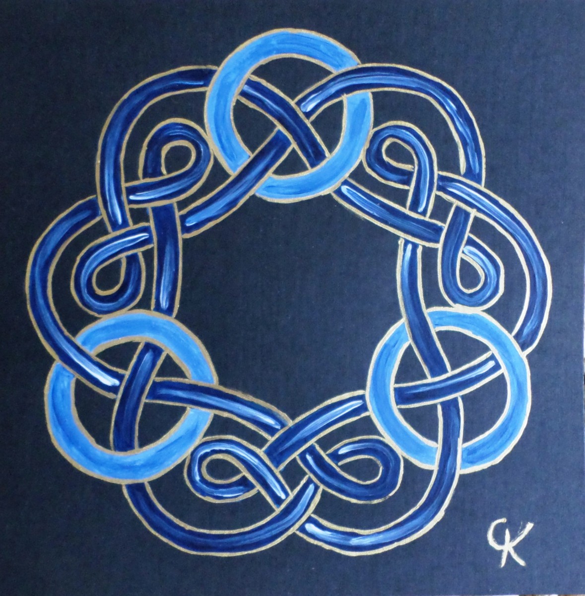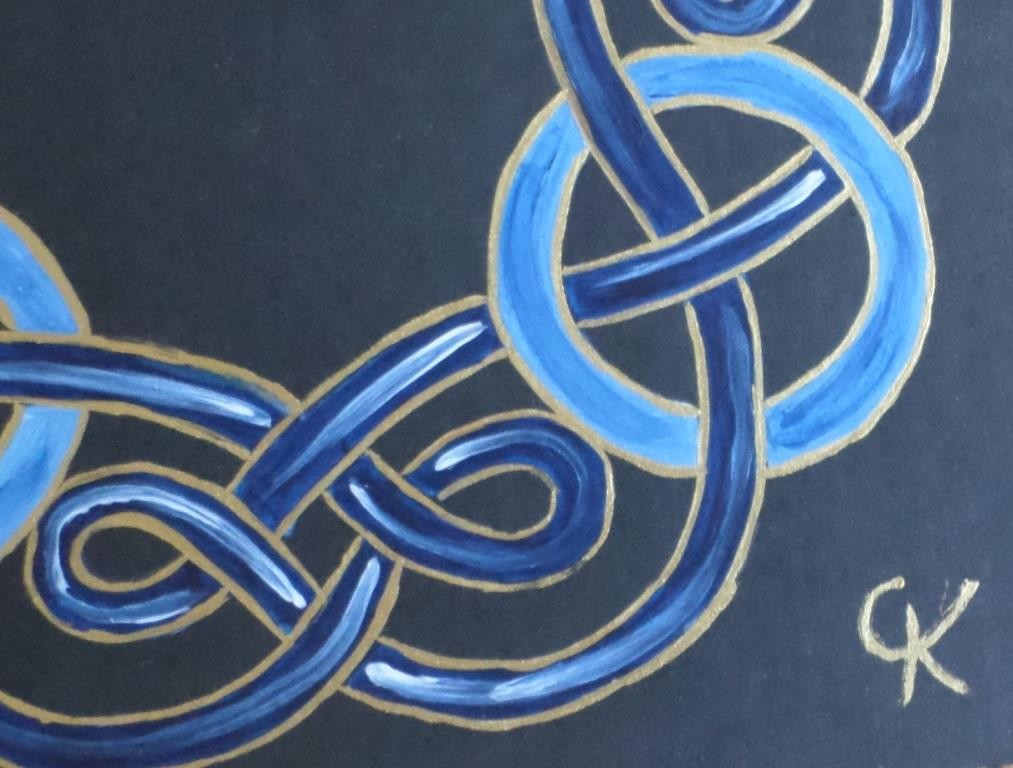 08-Carte carrée "Celte" bleu de Prusse : entrelacs foncés, nœuds clairs.
