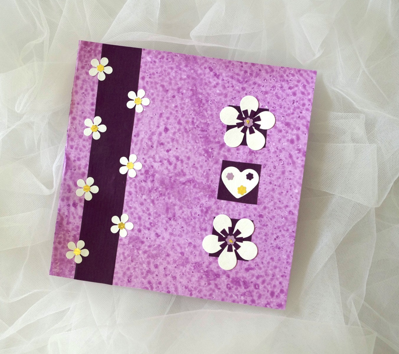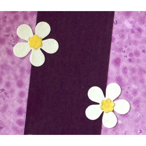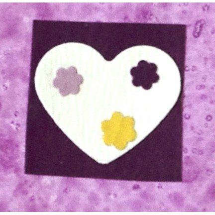 Un joli papier fond violet aux motifs de paquerettes stylisée et d'un coeur.