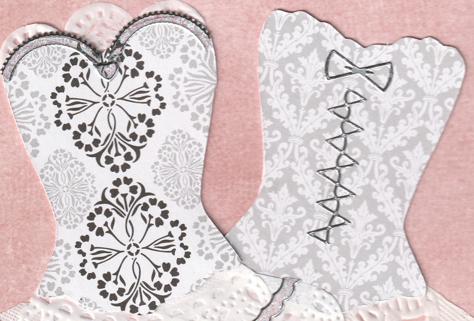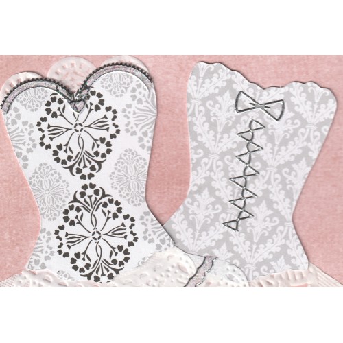 Papier 300 g/m², blanc nacré repeint en argenté, bord dentellé.