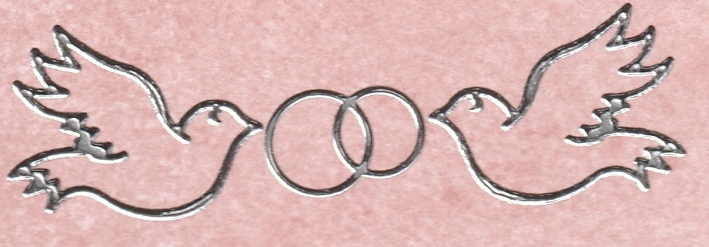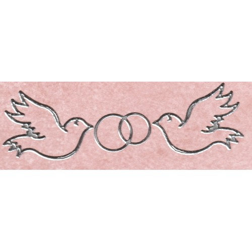 Un couple de colombes et deux alliances symbolisent l'échange de voeux.