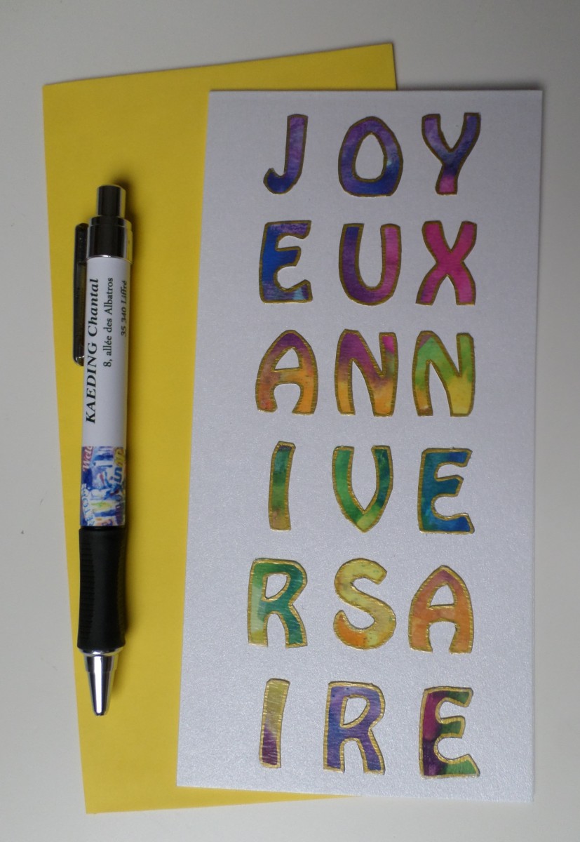 "JOYEUX ANNIVERSAIRE" y est inscrit en lettres en dégradés de couleurs.