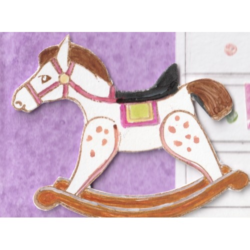 Décorations murales, meuble de rangement et le cheval à bascule pour de "futurs escapades dans le vent".