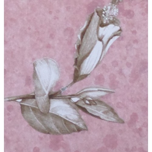 Papier blanc nacré 300 g/m², fond peint par mes soins, donc unique.