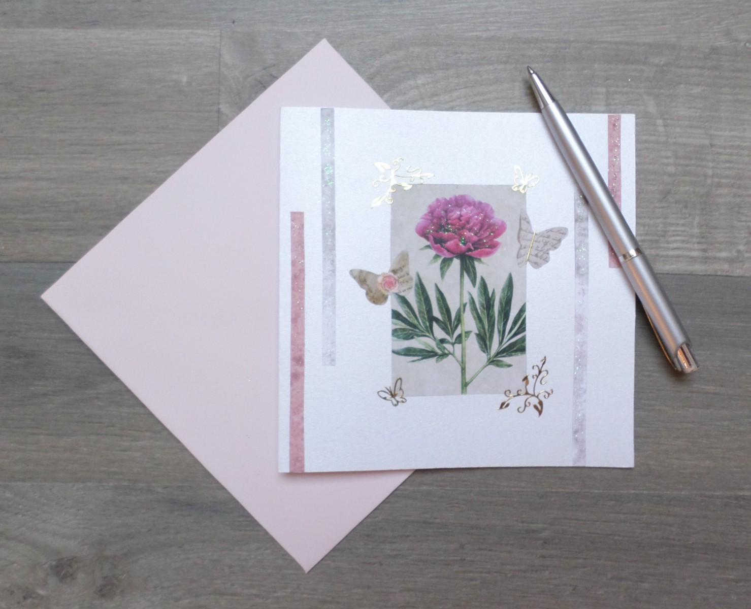 Livrée avec une enveloppe rose pâle.
