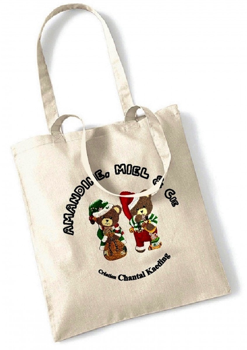 Amandine et Miel en lutins de Noël pour vous accompagner partout sur un sac 100% coton.
