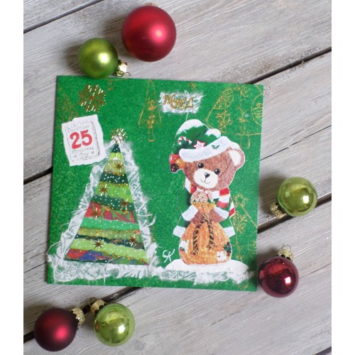 Carte carrée verte double Ourson "Amandine Lutine pour Noël"