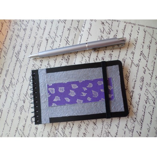 25 - Carnet de sac ou de poche, noir, argent et violet tacheté