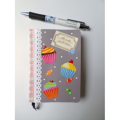Carnet décoré (à élastique) : "Cup Cake et Compagnie"