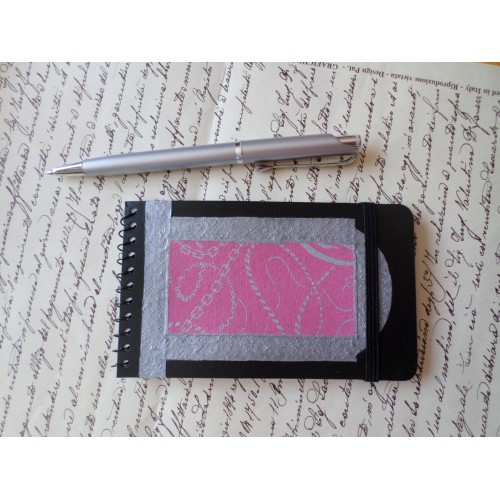 20 - Carnet de sac ou de poche, noir, argent et rose