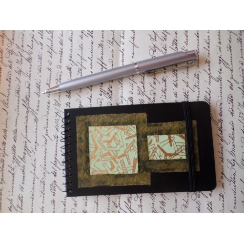 23 - Carnet de sac ou de poche, noir, or bleu canard et motif floral