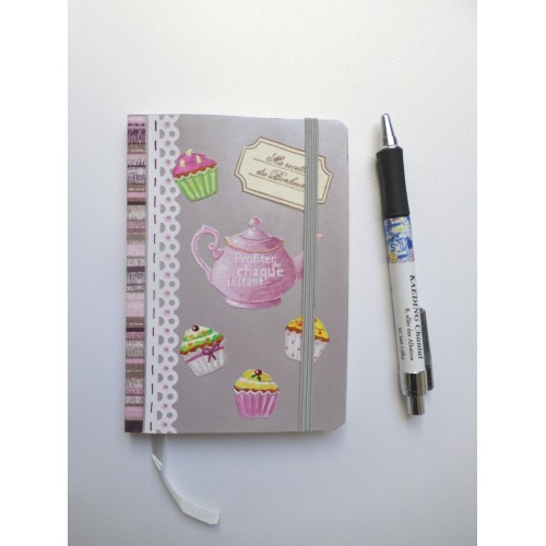 Carnet décoré (à élastique) : "Thé et Cup Cake"
