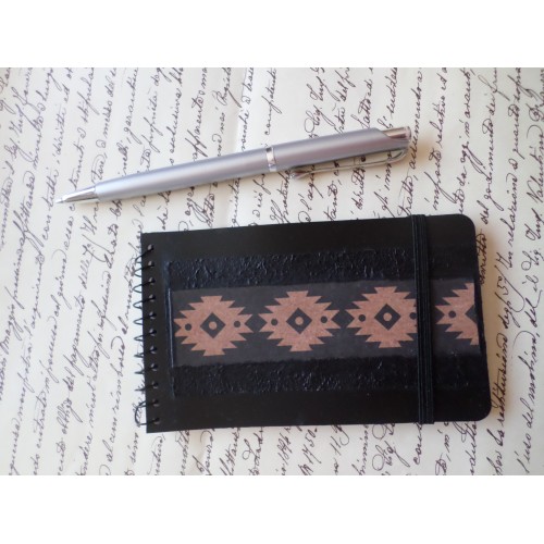 17 - Carnet de sac ou de poche, noir et motif amérindien sépia