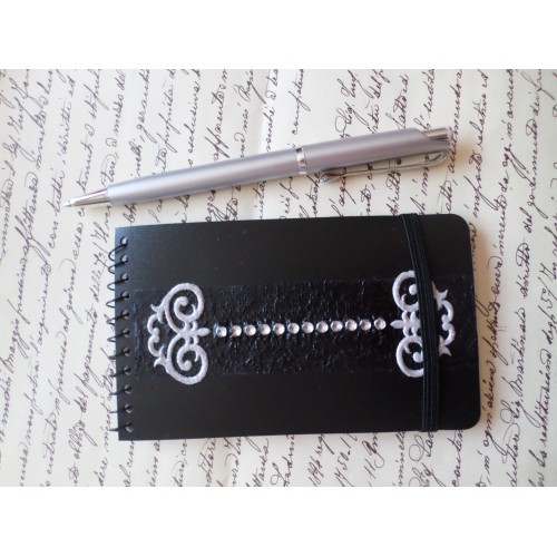 08 - Carnet de sac ou de poche, noir et arabesques argentées