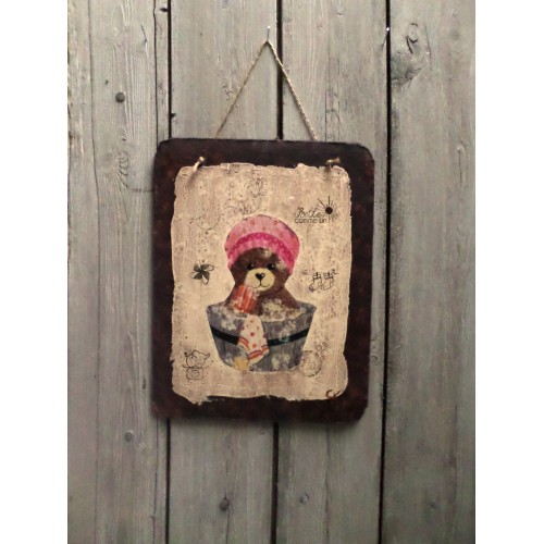 MIEL BEBE - Tableaux décoratif imitation plaque rouillée et émaillée