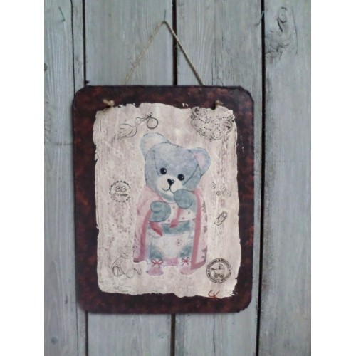 AMANDINE BEBE - Tableaux décoratif imitation plaque rouillée et émaillée